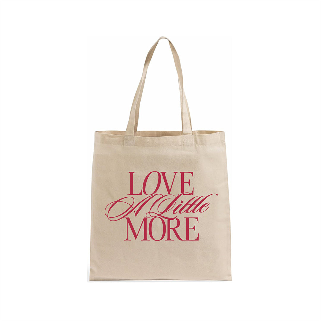 Classic cotton canvas tote bag with Love A Little More Graphic screen printed.